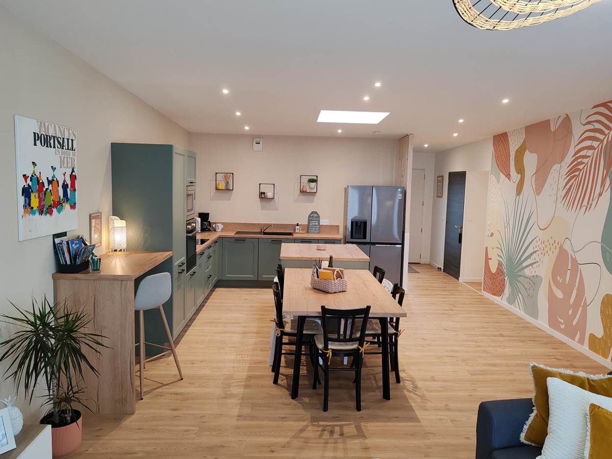 - Une pièce de vie lumineuse avec salon et cuisine neuve, entièrement équipée