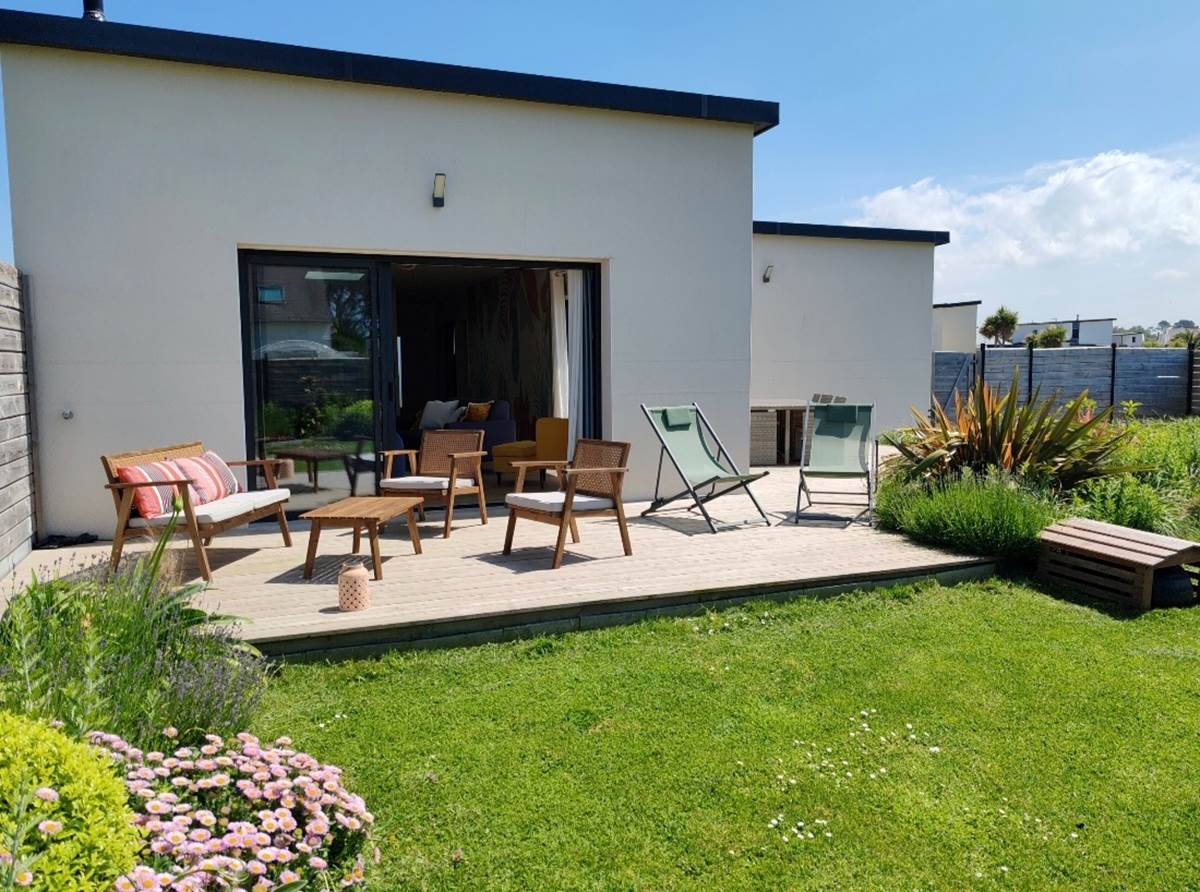 Et la grande terrasse en bois de 50 m², attenante au séjour et à l'une des chambres, vous invite à profiter du fameux soleil breton… oui oui, il existe !