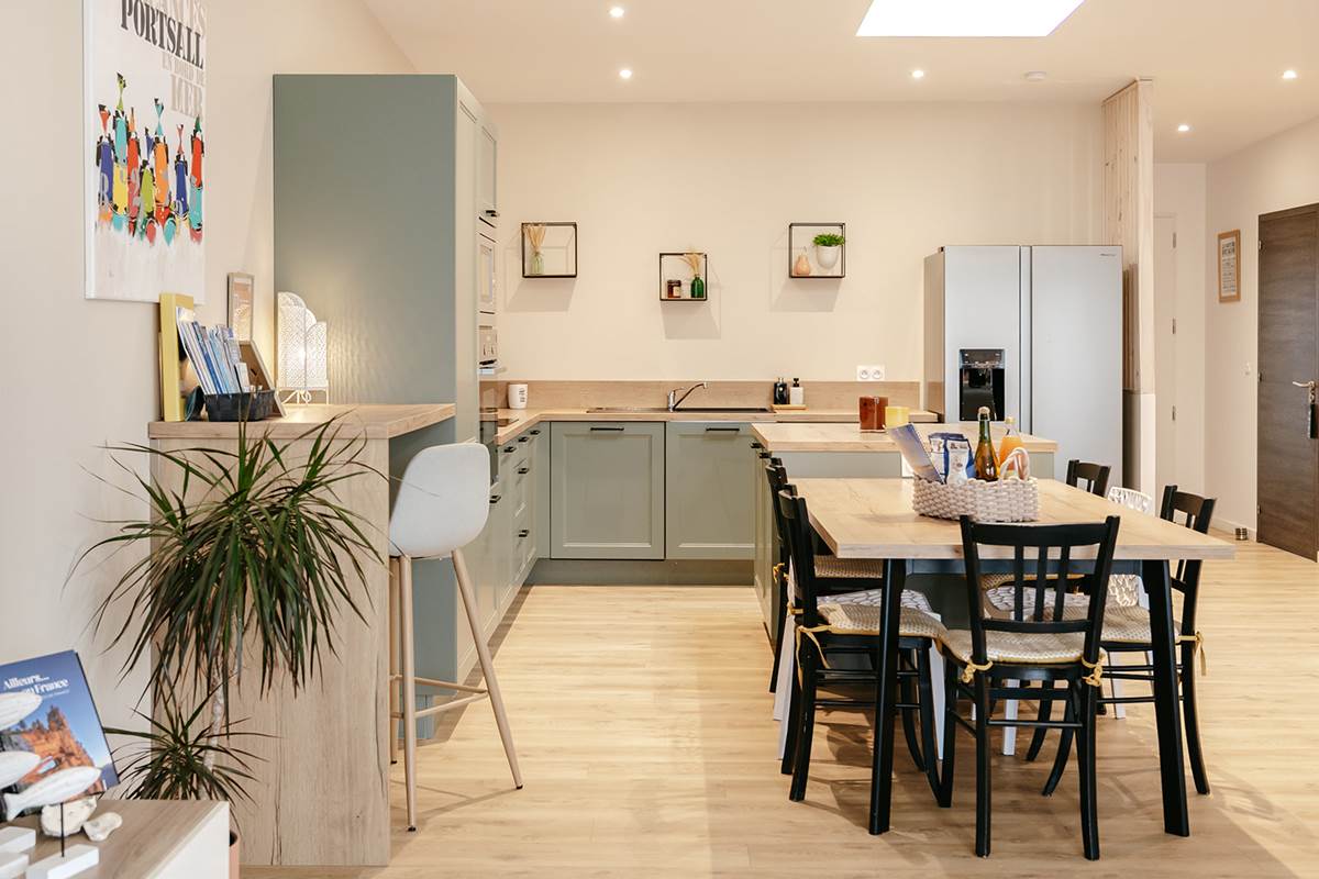 Lumineuse, exposée sud-ouest, la maison dispose d'une belle pièce de vie pour partager de bons moments en famille ou entre amis, après une journée de visites !