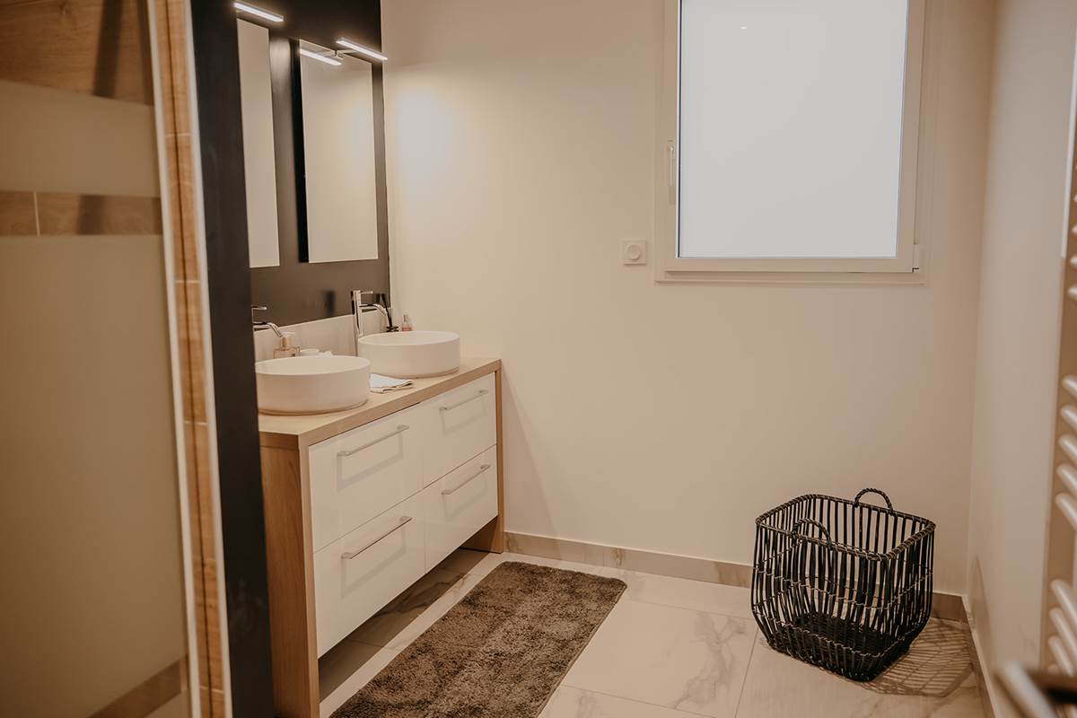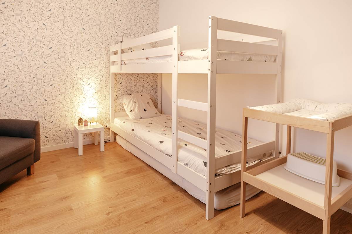 👉 3 chambres, dont deux avec de grands lits en 160 (parfait pour les grasses matinées), et une avec un lit superposé pour les moussaillons,